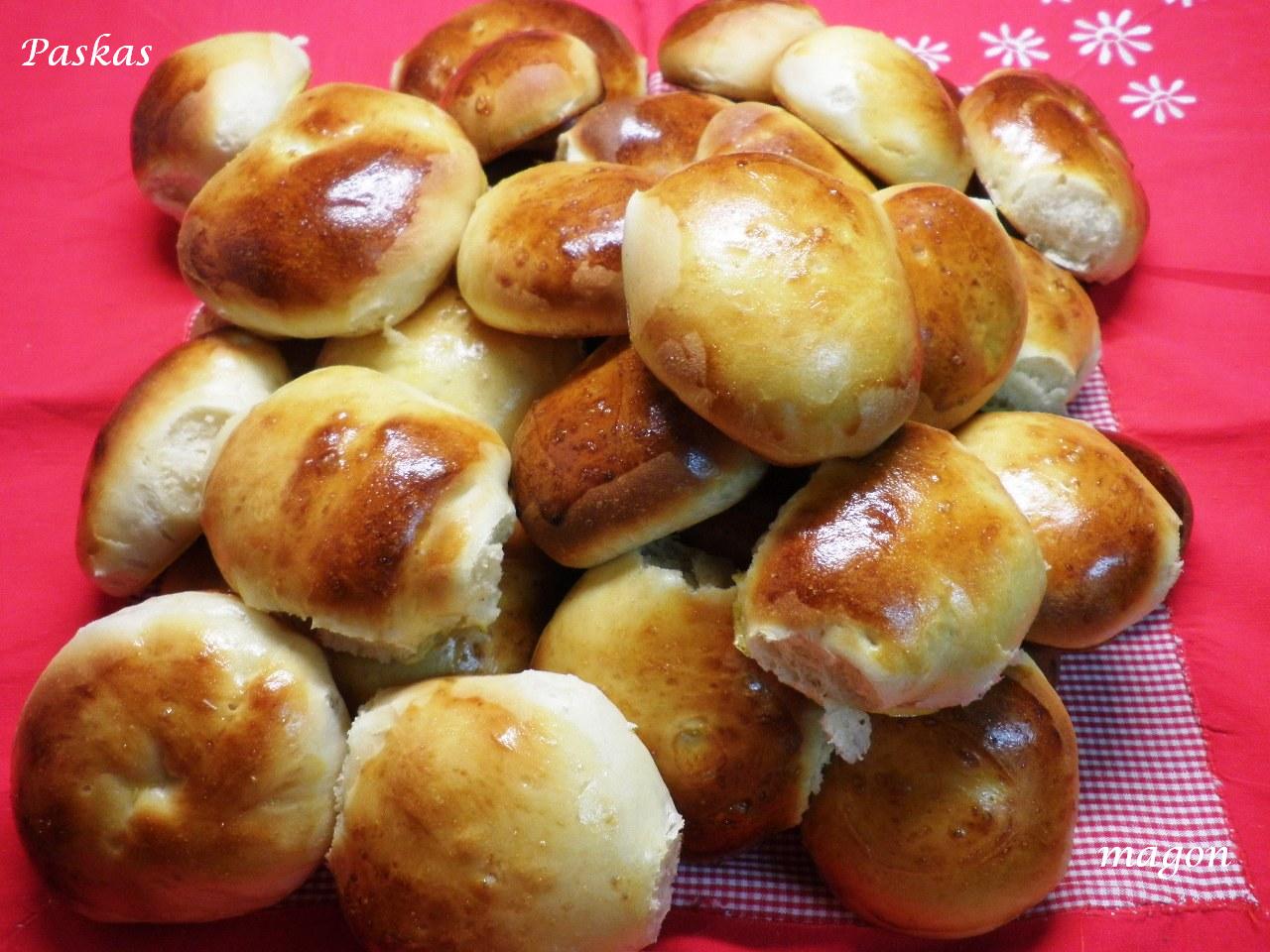 Precalentar el horno a 200º con aire arriba y abajo, pintar con yema batida los bollos y hornear hasta que doren 8 ó 10 minutos.