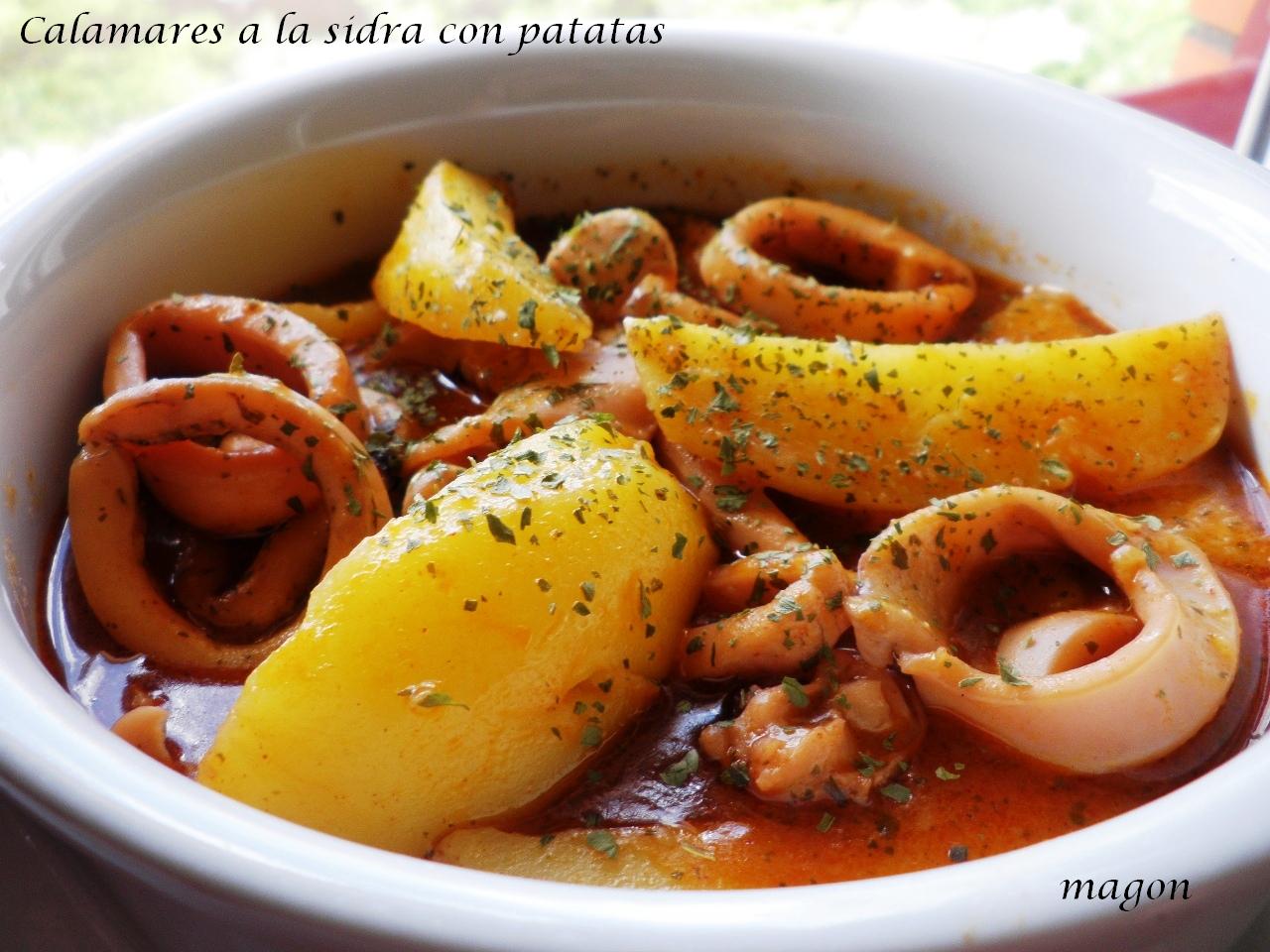 Tradicional: Calentar aceite en una perola, una vez caliente dorar los calamares (limpios y cortados en aros), añadir el pimentón cuando hayan dorado y la mitad de la sidra.